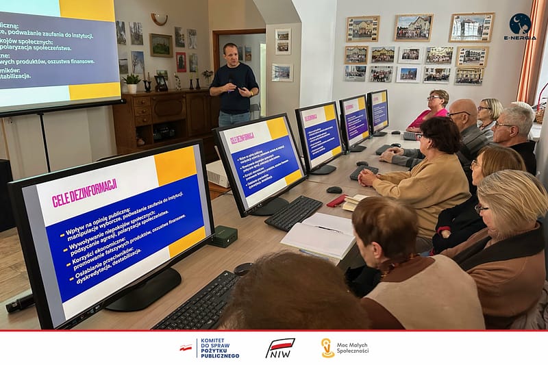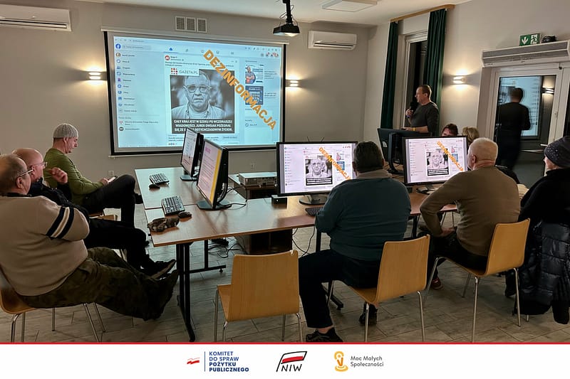 „Dezinformacja i oszustwa w sieci. Nie daj się nabrać!”. Za nami szkolenie w Wilczycach. Pokazywaliśmy konkretne przykłady dezinformacji, wyjaśnialiśmy czym jest i jakie niesie zagrożenia.