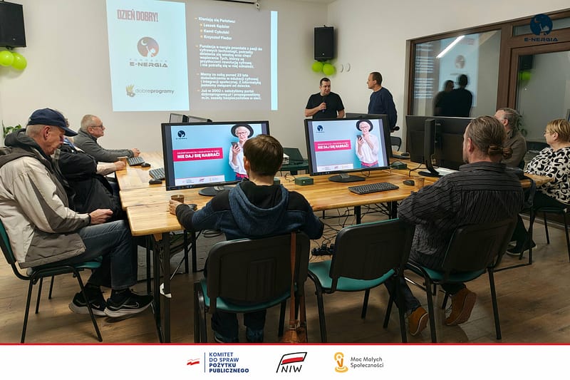 Za nami szkolenie „Dezinformacja i oszustwa w sieci. Nie daj się nabrać!” w Cielętnikach, w gminie Zawonia, zorganizowane we współpracy z Radnym Pawłem Komorowskim. Pokazywaliśmy